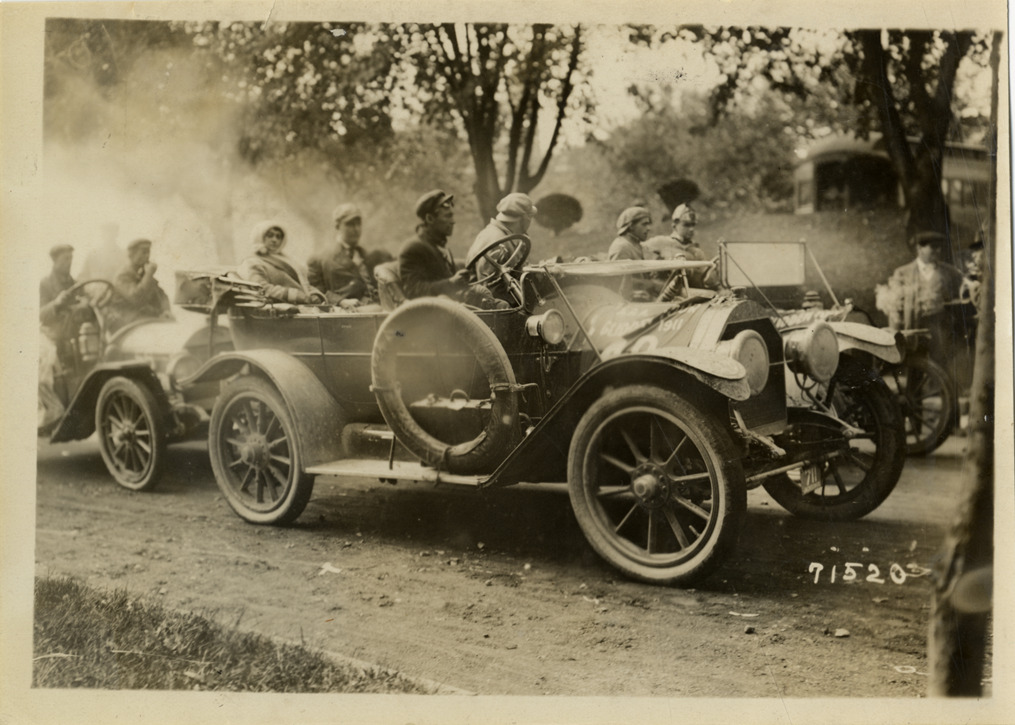 Favorite this☆ Motorists in automobile, 1911 Glidden Tour Description: View of motorists in car during the 1911 Glidden Tour. Stamped on back: "Spooner & Wells, Inc., photographers, telephones 3472-3473 Columbus, 1931 Broadway, New York." Handwritten on back: "Tours--Glidden Tour, 1911." Details Resource ID: na026470 Creator: Spooner & Wells Subject: Automobiles Glidden Tour (1911) Automobile driving--Competitions--United States Photographers--New York (State)--New York Photographic prints Date Issued: 1911-10 Format: 1 photographic print ; 5 x 6.75 in. Member of: National Automotive History Collection Lazarnick Collection Filing Location: Tours--Glidden Tour, 1911 #38 Rights: Physical rights are retained by DPL. Copyright is retained in accordance with U.S. copyright laws.