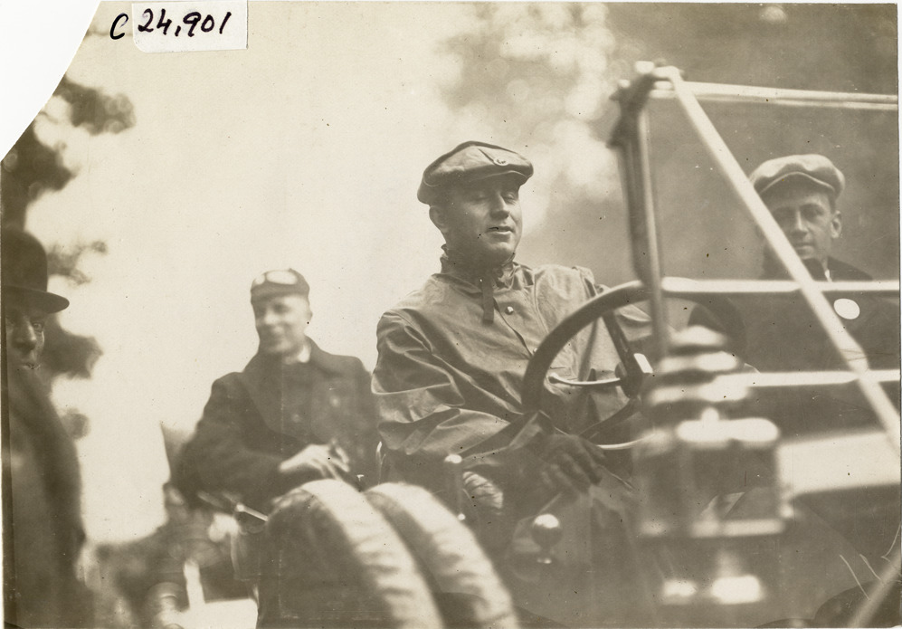 Driver and passengers in automobile, 1909 Hackettstown Endurance Run