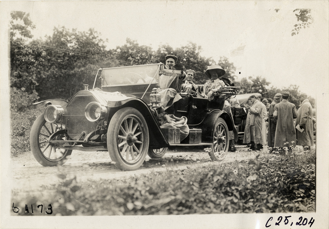 Motorists posing in automobile, 1910 Montauk Point Reliability Run