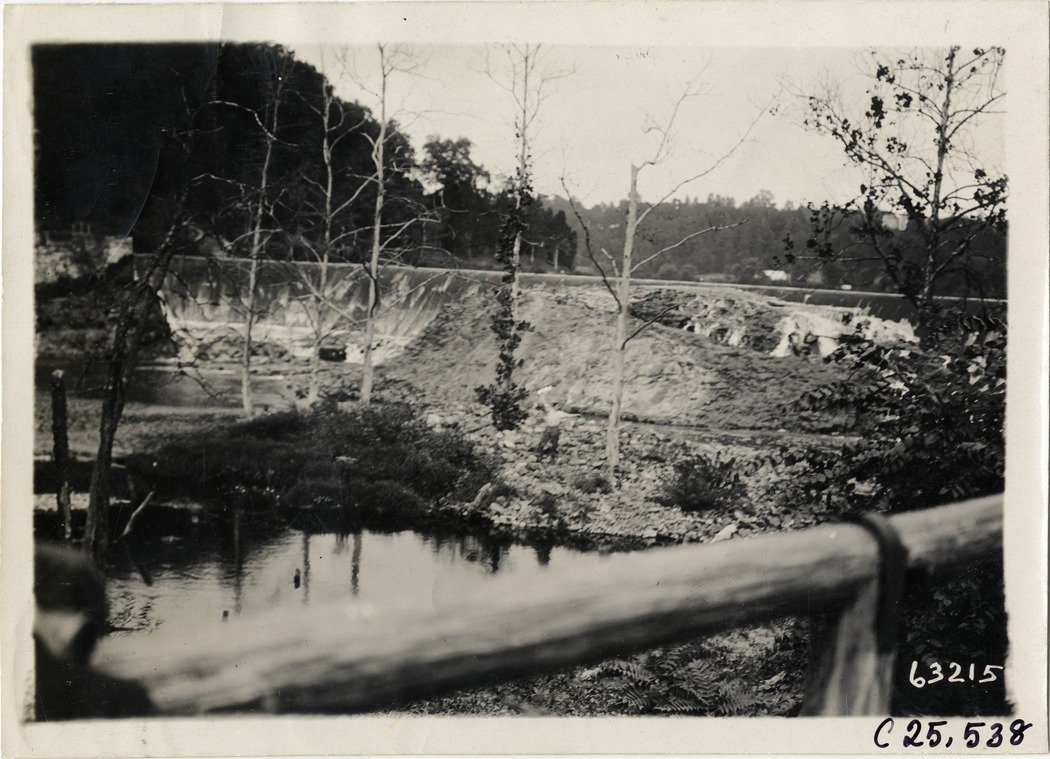 Distant view of man waving a cloth at the edge of a lake or pond during the 1910 Munsey Historic Tour. Organized by the Munsey newspapers, the endurance contest covered a route through ten states. Stamped on back: "Spooner & Wells, Inc., photographers, telephones 3472-3473 Columbus, 1931 Broadway, New York." Handwritten on back: "Tours--Munsey Historic Tour, 1910."