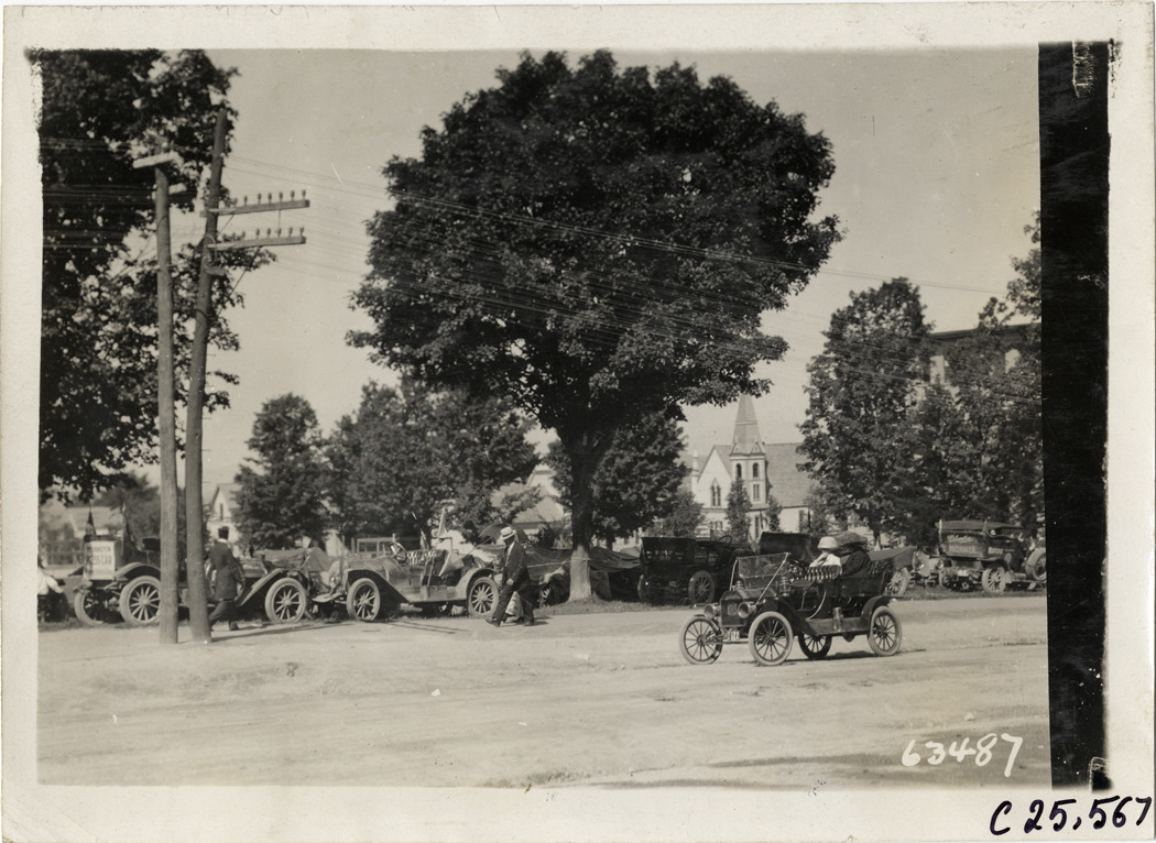 Automobiles parked on roadside, 1910 Munsey Historic Tour