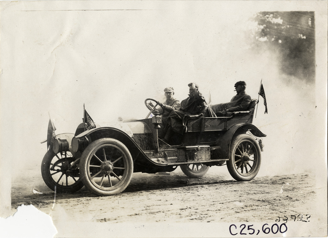 Motorists posing in Matheson automobile, 1910 Munsey Historic Tour