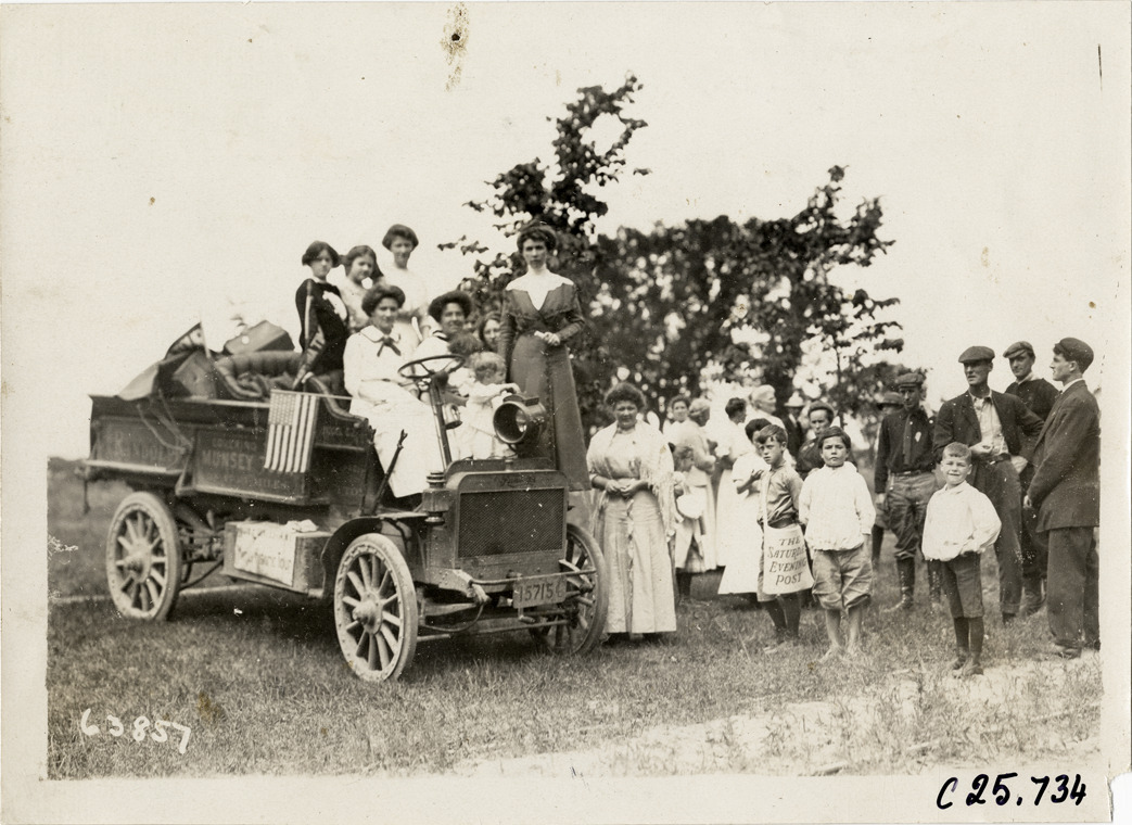 Women posing in Randolph truck, 1910 Munsey Historic Tour