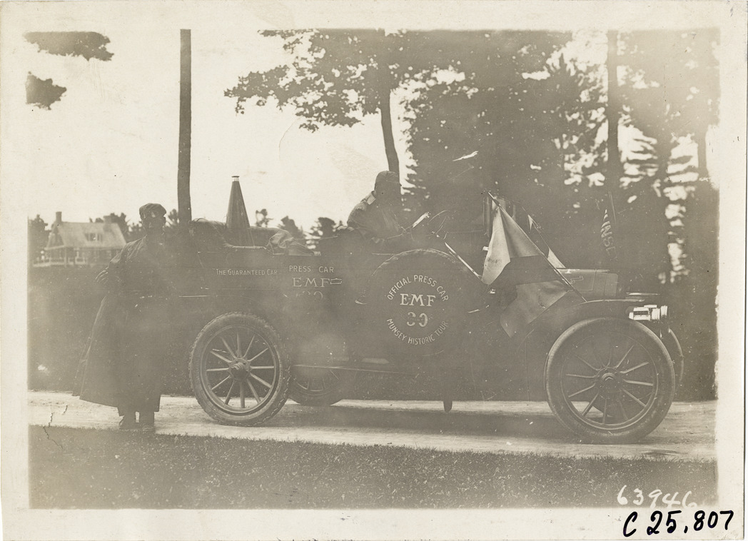 Motorists with E-M-F press automobile, 1910 Munsey Historic Tour