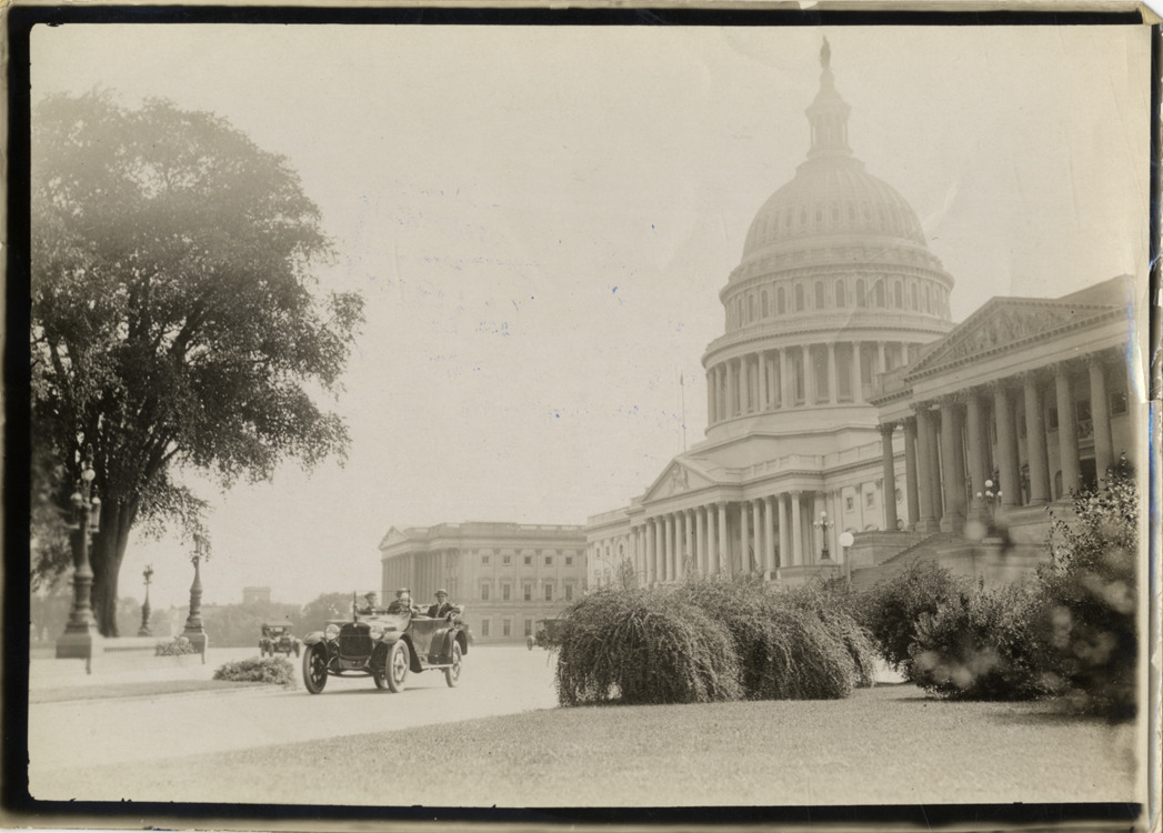 Hupmobile automobile in front of U.S. Capitol building, Hupmobile United American Tour