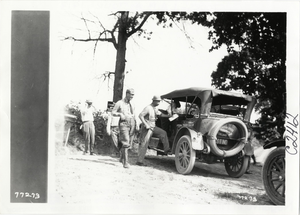 Motorists with Apperson automobile on roadside, 1913 Indiana Automobile Manufacturers' Association tour