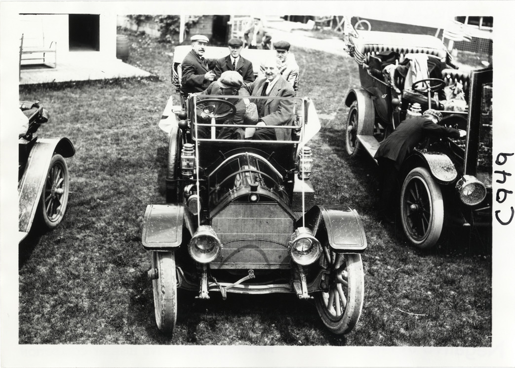 Motorists posing in automobile, 1910 Long Island Endurance Run