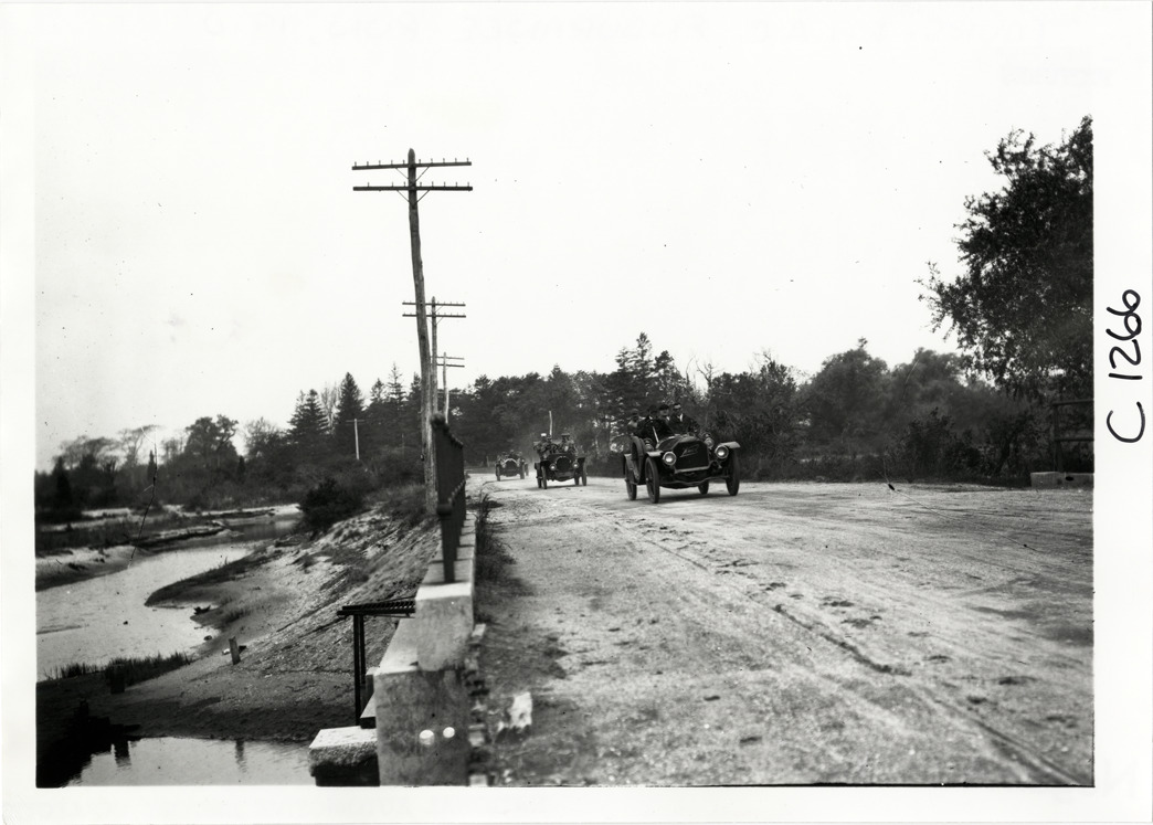Motorists in automobiles traveling on rural road, 1910 Long Island Endurance Run