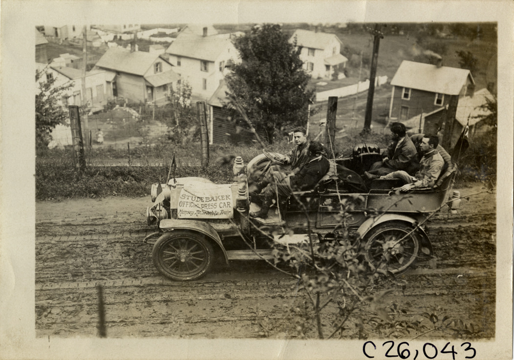 Motorists in Studebaker press automobile, 1909 Munsey Reliability Run