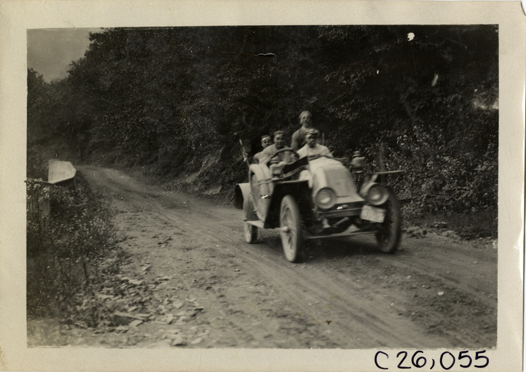 Favorite this☆ Motorists in automobile traveling on rural road, 1909 Munsey Reliability Run Description: View of motorists in car traveling on rural dirt road during the 1909 Munsey Reliability Run. Handwritten on back: "Tours--Munsey Reliability Run, 1909." Details Resource ID: na028771 Subject: Automobiles Rural roads Automobile driving--Competitions--East (U.S.) Automobile travel--East (U.S.) Photographic prints Date Issued: 1909-09 Format: 1 photographic print ; 5 x 7 in. Member of: National Automotive History Collection Lazarnick Collection Filing Location: Tours--Munsey Reliability Run, 1909 #8 Negative Number: Negative #C26,055 Rights: Physical rights are retained by DPL. Copyright is retained in accordance with U.S. copyright laws.