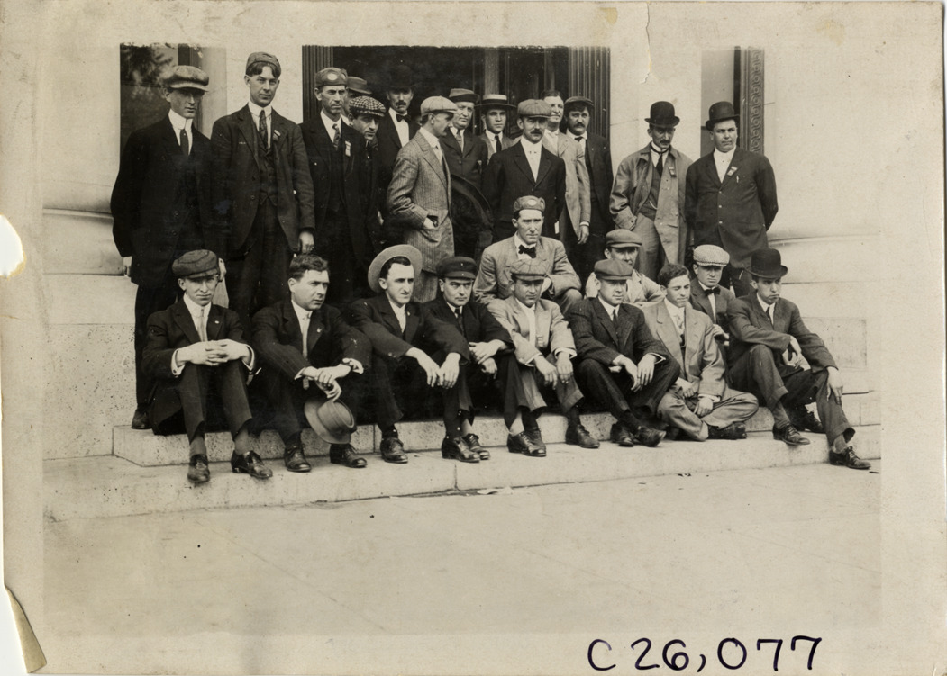 Favorite this☆ Men posing on building steps, 1909 Munsey Reliability Run Description: View of group of men posing on building steps during the 1909 Munsey Reliability Run. Handwritten on back: "Tours--Munsey Reliability Run, 1909." Details Resource ID: na028792 Subject: Portraits, Group Automobile driving--Competitions--East (U.S.) Automobile travel--East (U.S.) Photographic prints Date Issued: 1909-09 Format: 1 photographic print ; 5 x 7 in. Member of: National Automotive History Collection Lazarnick Collection Filing Location: Tours--Munsey Reliability Run, 1909 #9 Negative Number: Negative #C26,077 Rights: Physical rights are retained by DPL. Copyright is retained in accordance with U.S. copyright laws.