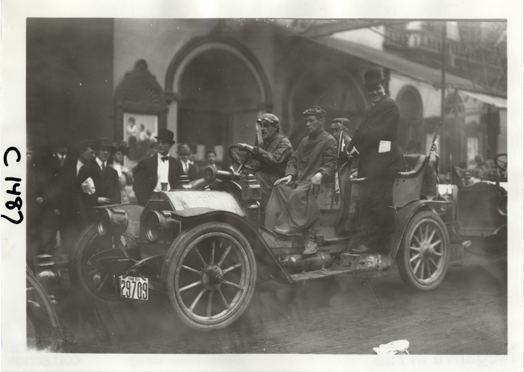 Favorite this☆ Motorists posing with automobile, 1909 Munsey Reliability Run Description: View of motorists posing with car during the 1909 Munsey Reliability Run. Spectators in background. Handwritten on back: "Tours--Munsey Reliability Run, 1909." Details Resource ID: na028816 Subject: Automobiles Automobile driving--Competitions--East (U.S.) Automobile travel--East (U.S.) Photographic prints Date Issued: 1909-09 Format: 1 photographic print ; 5 x 7 in. Member of: National Automotive History Collection Lazarnick Collection Filing Location: Tours--Munsey Reliability Run, 1909 #11 Negative Number: Negative #C1487 Rights: Physical rights are retained by DPL. Copyright is retained in accordance with U.S. copyright laws.