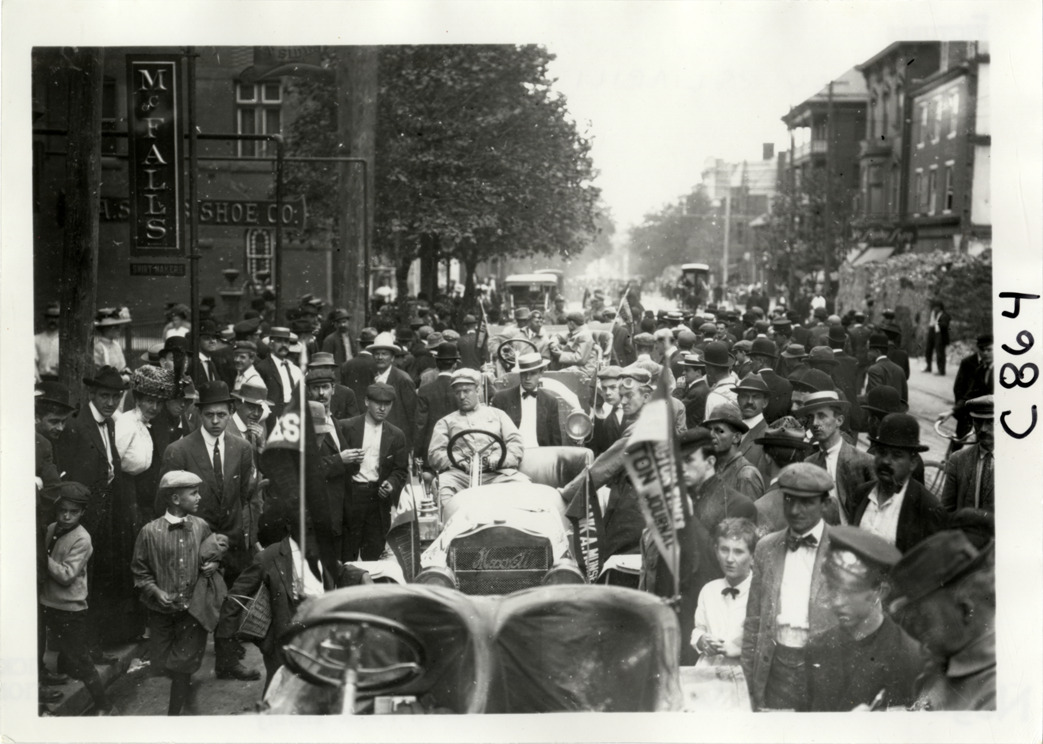 Favorite this☆ Crowd surrounding automobiles in street, 1909 Munsey Reliability Run Description: Close-up view of crowd surrounding cars in street during the 1909 Munsey Reliability Run. Handwritten on back: "Tours--Munsey Reliability Run, 1909." Details Resource ID: na028826 Subject: Automobiles Crowds Automobile driving--Competitions--East (U.S.) Automobile travel--East (U.S.) Photographic prints Date Issued: 1909-09 Format: 1 photographic print ; 5 x 7 in. Member of: National Automotive History Collection Lazarnick Collection Filing Location: Tours--Munsey Reliability Run, 1909 #11 Negative Number: Negative #C864 Rights: Physical rights are retained by DPL. Copyright is retained in accordance with U.S. copyright laws.