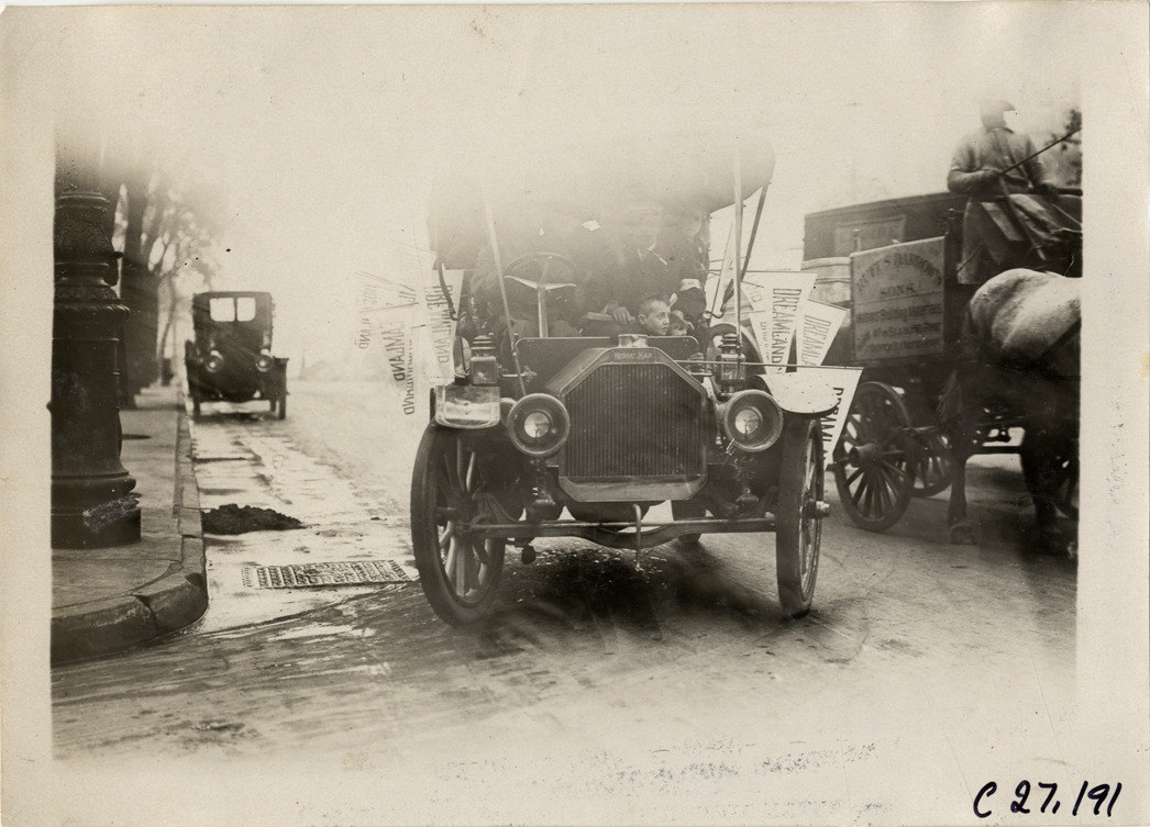 Children and motorists in Kissel Kar automobile, 1909 New York Orphans Day outing