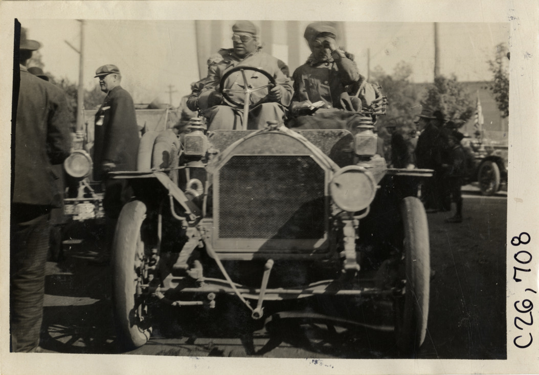 Motorists in automobile, 1909 New York-Atlanta Good Roads Tour