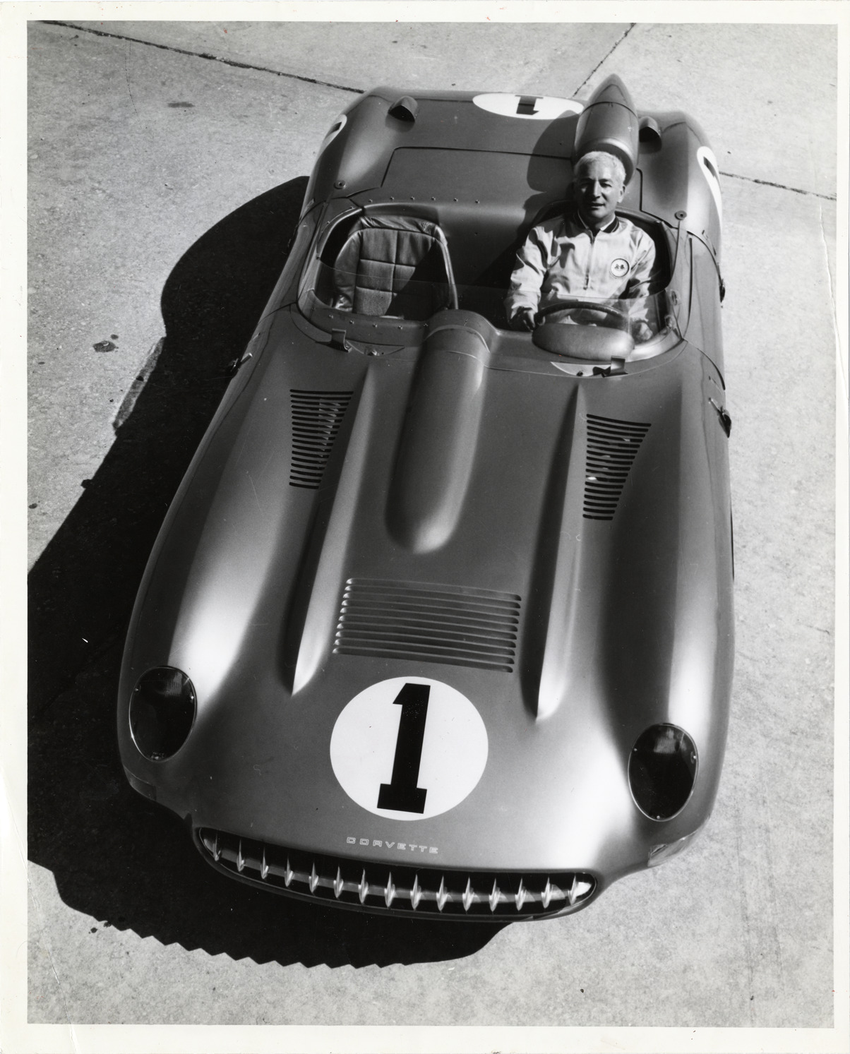 Zora Arkus-Duntov in 1957 Chevrolet Corvette experimental automobile