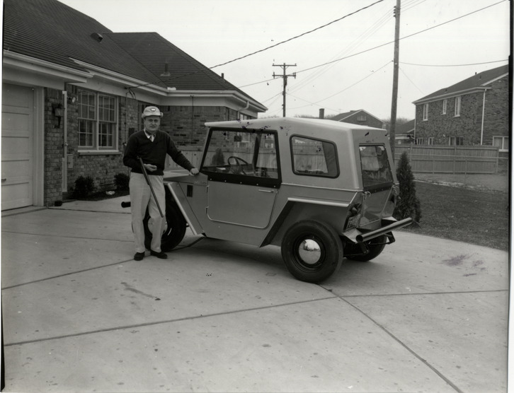 Favorite this☆ Arnold P. Saviano posing with 1960 Saviano Scat Description: View of Arnold P. Saviano posing with 1960 Saviano Scat utility car. Brick houses in background. Handwritten on back: "1960 Scat by Saviano Veh. Inc. shown w/ Arnold P. Saviano." Details Resource ID: na030054 Subject: Automobiles Saviano Vehicles Photographic prints Date Issued: 1960 Format: 1 photographic print ; 3.75 x 4.75 in. Member of: National Automotive History Collection Filing Location: Truck & Bus-Scat Rights: Physical rights are retained by DPL. Copyright is retained in accordance with U.S. copyright laws.
