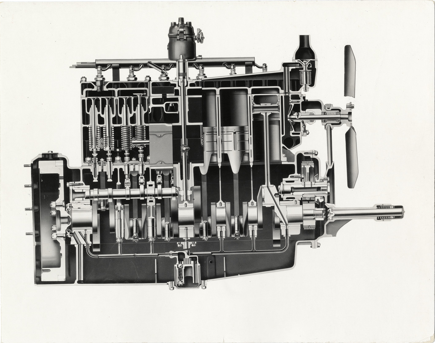 Favorite this☆ Engine, 1925-1926 Packard automobile Description: Artist's depiction of engine for 1925-1926 Packard car, Third Series Six. Handwritten on back: "1925-26 Packard, Third Series Six, 6 cy., 60 b.h.p., engine, right elevation ~ cross section. 103-E, 1925, cross section of motor." Details Resource ID: na030072 Subject: Packard automobile Automobiles--Motors Photographic prints Date Issued: 1925 Format: 1 photographic print mounted on fabric ; 7.5 x 9.5 in. Member of: National Automotive History Collection Packard Collection Filing Location: Packard, 1925-26 Negative Number: 103-E Rights: Physical rights are retained by DPL. Copyright is retained in accordance with U.S. copyright laws.