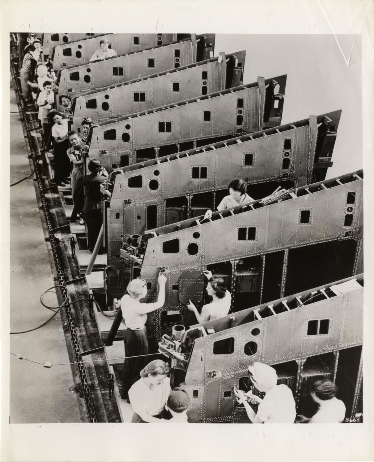Women assembling Curtiss-Wright "Helldiver" aircraft at Chrysler factory