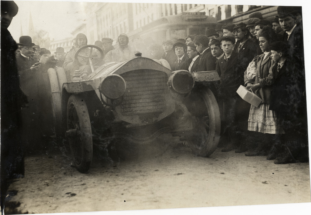 Favorite this☆ Motorists in automobile, 1909 New York to Boston Endurance Run Description: View of motorists in car, surrounded by spectators, during the 1909 New York to Boston endurance run. Handwritten on back: "Tours--New York to Boston Endurance Run, 1909." Details Resource ID: na030210 Subject: Automobiles Spectators Automobile driving--Competitions--East (U.S.) Automobile travel--East (U.S.) Photographic prints Date Issued: 1909 Format: 1 photographic print ; 4.75 x 6.75 in. Member of: National Automotive History Collection Lazarnick Collection Filing Location: Tours--New York to Boston Endurance Run, 1909 #1 Rights: Physical rights are retained by DPL. Copyright is retained in accordance with U.S. copyright laws.
