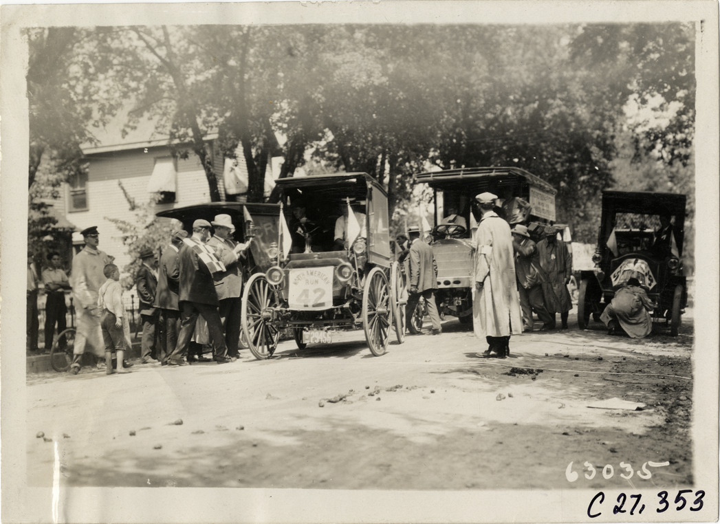 Motorists in trucks at checkpoint, Hammonton, New Jersey, 1910 North American Run