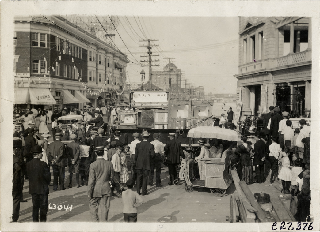 Crowd surrounding Frayer-Miller truck, Atlantic City, New Jersey, 1910 North American Run