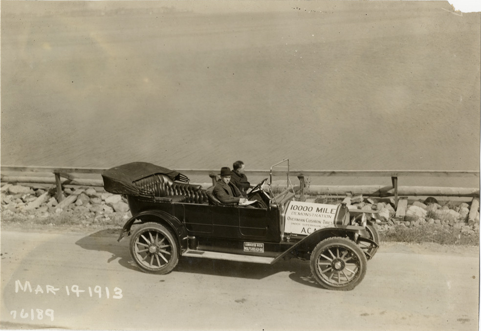 Motorists in National automobile, 1913 Overman tires 10,000 mile demonstration