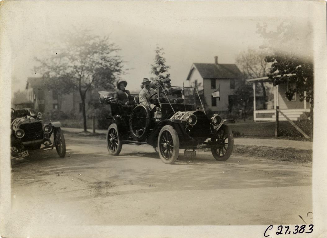 H.A. Rosenheim and passengers in Cadillac automobile, 1910 Quaker City Motor Club Roadability Run
