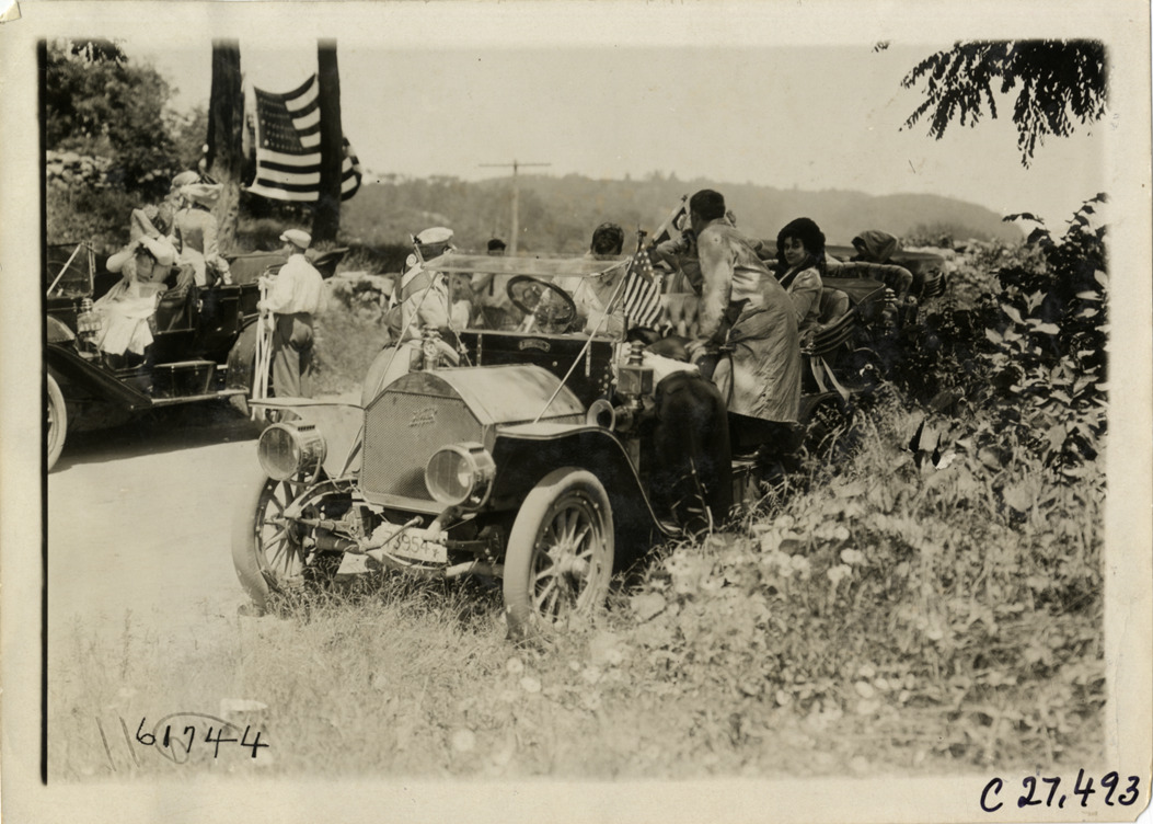 Motorists with Knox official automobile on roadside, 1910 Touring Club of America Owners' Sociability Run