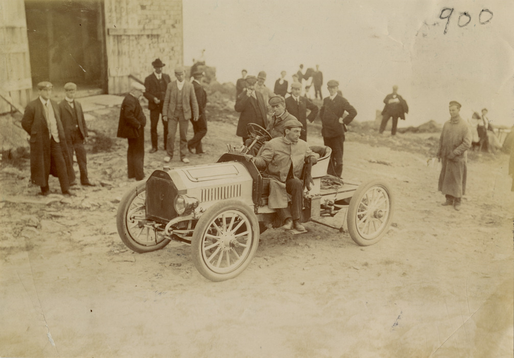 Motorists in Peerless automobile, Climb to the Clouds Hill Climb, 1904 White Mountains tour