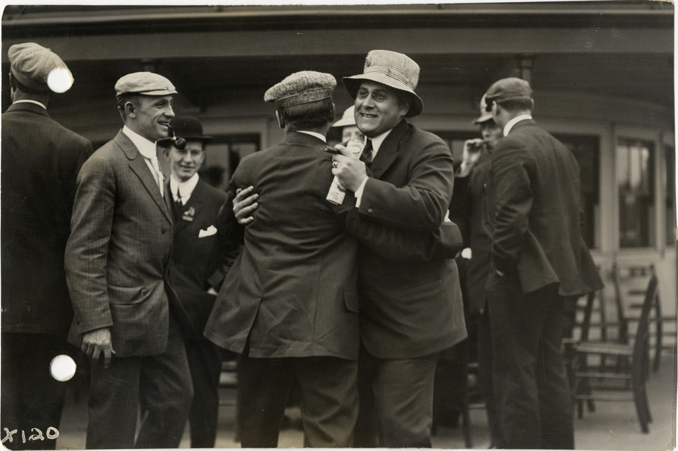 Mr. Hoxhurst dancing with man on deck of steamship City of Detroit III, 1913 S.A.E. summer meeting