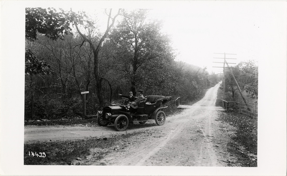 Favorite this☆ Motorists in White automobile traveling on rural road Description: View of motorists in White Steamer car traveling on rural dirt road. One man points at roadside sign. Handwritten on back: "White, c.1912." Details Resource ID: na031372 Subject: Automobiles White Company (Cleveland, Ohio) Rural roads Photographic prints Date Issued: 1912 (year approximate) Format: 1 photographic print ; 5 x 8 in. Member of: National Automotive History Collection Lazarnick Collection Filing Location: White, 1912 Rights: Physical rights are retained by DPL. Copyright is retained in accordance with U.S. copyright laws.