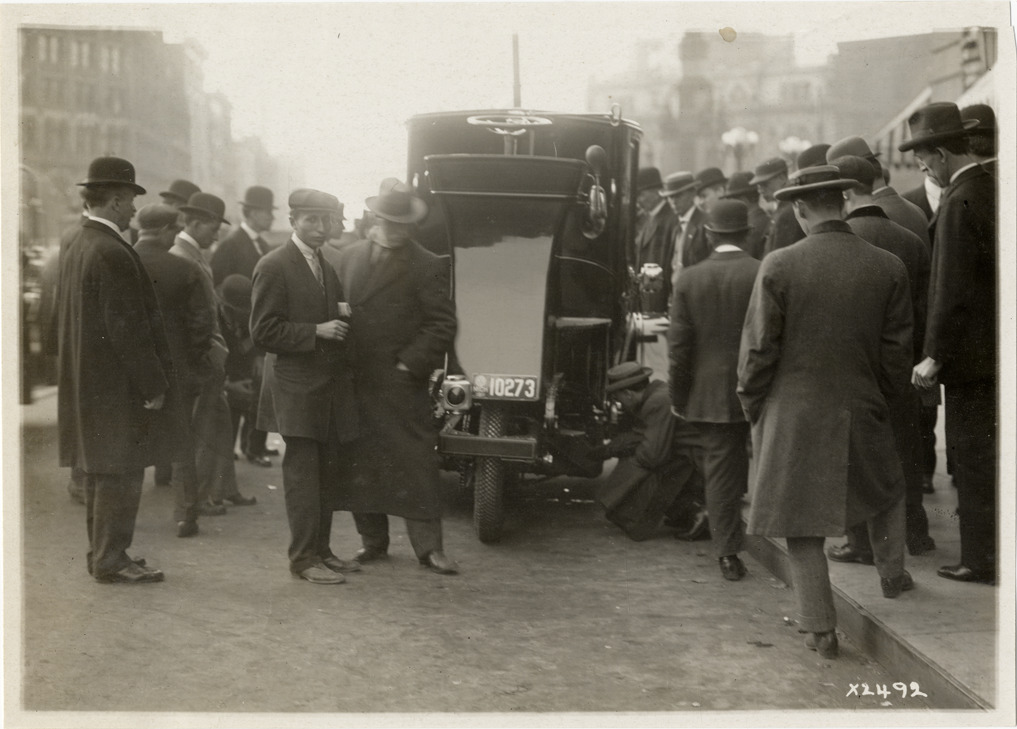 Favorite this☆ Spectators surrounding Wagenhals vehicle Description: View of spectators surrounding a Wagenhals vehicle. Handwritten on back: "Wagenhalls [sic], 1911. Wagenhals, 1911." Details Resource ID: na031376 Subject: Automobiles, Three wheel Wagenhals Motor Company Spectators Photographic prints Date Issued: 1911 Format: 1 photographic print ; 5 x 6.75 in. Member of: National Automotive History Collection Lazarnick Collection Filing Location: Wagenhals Rights: Physical rights are retained by DPL. Copyright is retained in accordance with U.S. copyright laws.