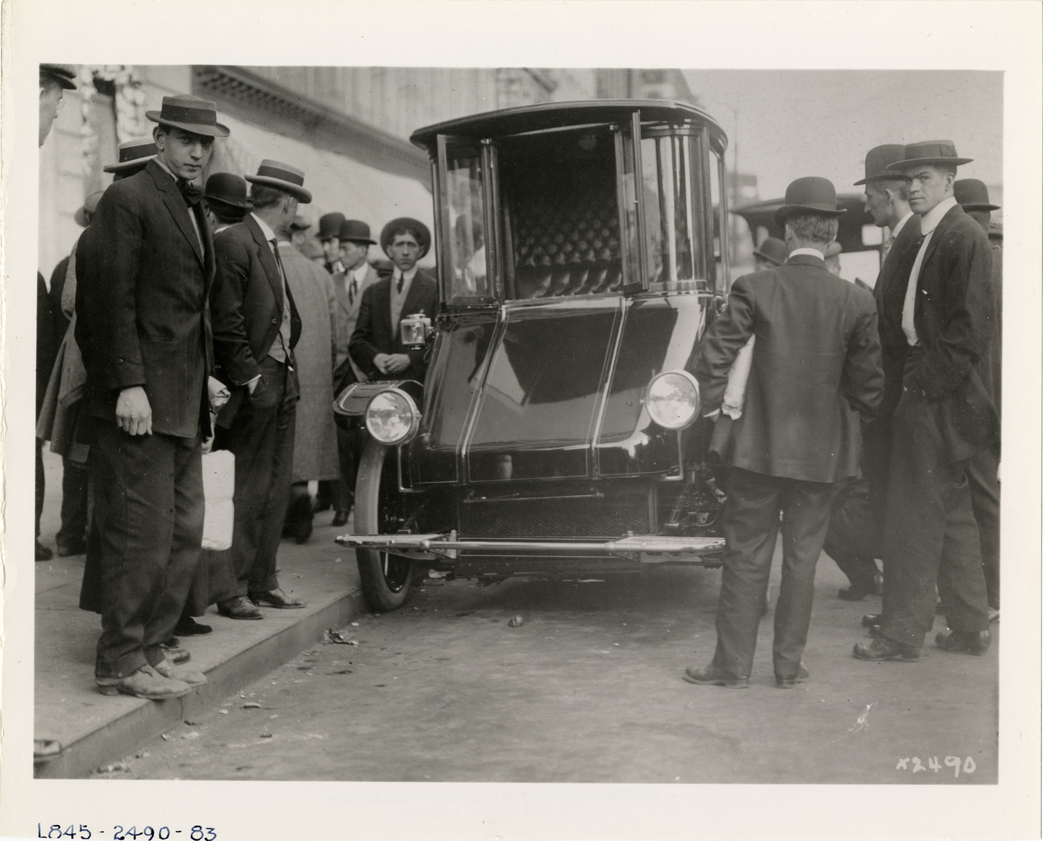 Favorite this☆ Spectators surrounding Wagenhals electric cab Description: View of spectators surrounding a Wagenhals electric taxi. Handwritten on back: "Wagenhals." Details Resource ID: na031381 Subject: Taxicabs Automobiles, Three wheel Electric automobiles Wagenhals Motor Company Spectators Photographic prints Date Issued: 1911 Format: 1 photographic print ; 8 x 10 in. Member of: National Automotive History Collection Lazarnick Collection Filing Location: Wagenhals Rights: Physical rights are retained by DPL. Copyright is retained in accordance with U.S. copyright laws.