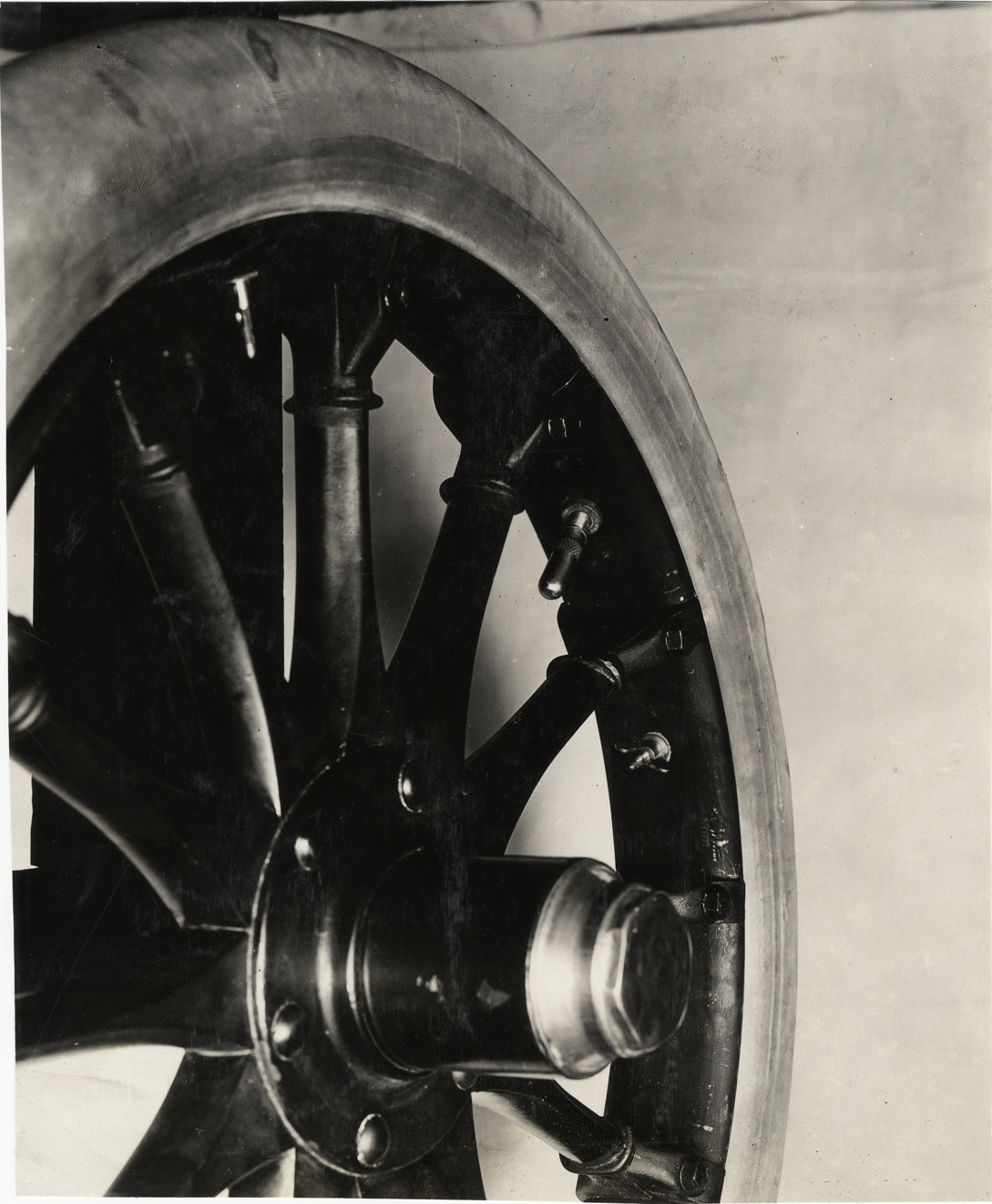 Favorite this☆ Automobile wheel and tire Description: Close-up view of car wheel and tire. Handwritten on back: "Wheels, 1908." Details Resource ID: na031400 Subject: Automobiles--Wheels Automobiles--Tires Photographic prints Date Issued: 1908 Format: 1 photographic print ; 8.75 x 7.25 in. Member of: National Automotive History Collection Lazarnick Collection Filing Location: Wheels #1 Rights: Physical rights are retained by DPL. Copyright is retained in accordance with U.S. copyright laws.