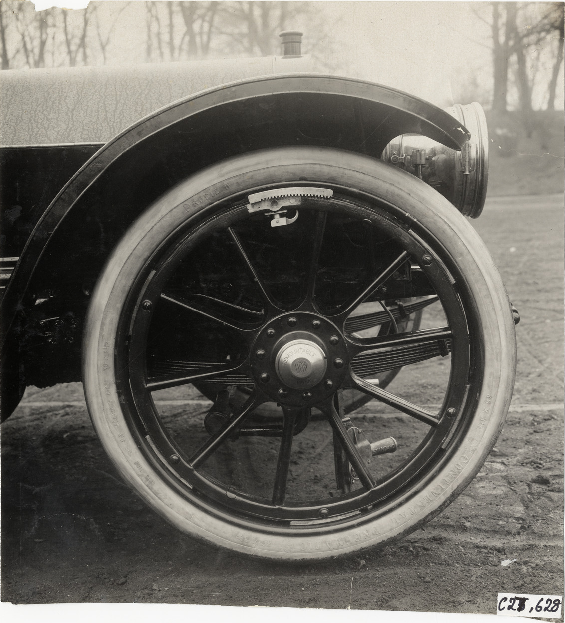 Favorite this☆ Automobile wheel with Dow rim Description: Close-up view of car wheel with Dow rim. Handwritten on back: "Wheels, Dow rim, 1908." Details Resource ID: na031409 Subject: Automobiles--Wheels Automobiles--Tires Photographic prints Date Issued: 1908 Format: 1 photographic print ; 8 x 7.5 in. Member of: National Automotive History Collection Lazarnick Collection Filing Location: Wheels #1 Negative Number: Negative #C27,628 Rights: Physical rights are retained by DPL. Copyright is retained in accordance with U.S. copyright laws.