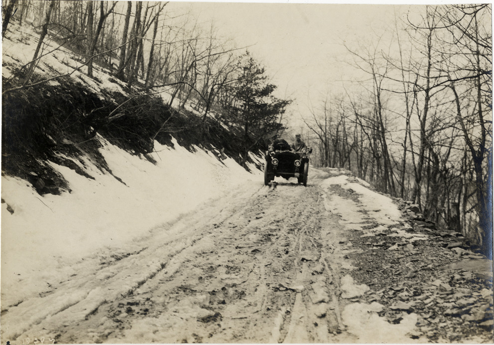 Favorite this☆ Motorists in 1905 White Steamer automobile traveling on snow-covered mountain road Description: View of motorists in 1905 White Steamer car traveling on snow-covered mountain road. Handwritten on back: "White Steamer, 1905." Details Resource ID: na031506 Subject: Automobiles, Steam White Company (Cleveland, Ohio) Mountain roads Photographic prints Date Issued: Unknown year Format: 1 photographic print ; 4.5 x 6.75 in. Member of: National Automotive History Collection Lazarnick Collection Filing Location: White, 1905 #2 Rights: Physical rights are retained by DPL. Copyright is retained in accordance with U.S. copyright laws.
