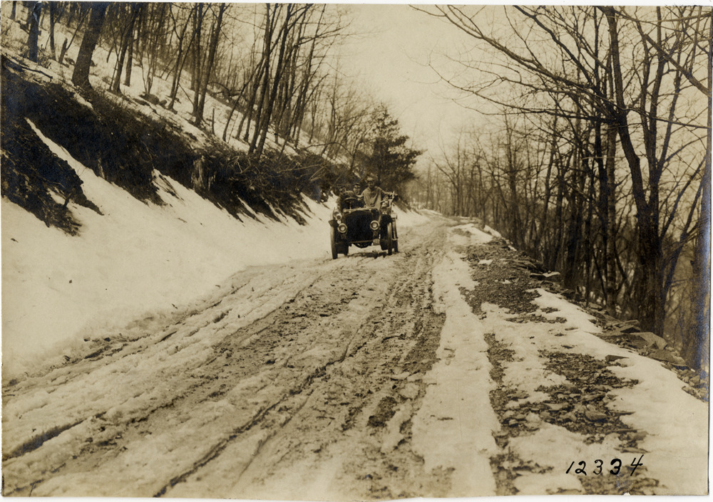 Favorite this☆ Motorists in 1905 White Steamer automobile traveling on snow-covered mountain road Description: View of motorists in 1905 White Steamer car traveling on snow-covered mountain road. Handwritten on back: "White Steamer, 1905." Details Resource ID: na031516 Subject: Automobiles, Steam White Company (Cleveland, Ohio) Mountain roads Photographic prints Date Issued: Unknown year Format: 1 photographic print ; 4.75 x 6.75 in. Member of: National Automotive History Collection Lazarnick Collection Filing Location: White, 1905 #2 Rights: Physical rights are retained by DPL. Copyright is retained in accordance with U.S. copyright laws.