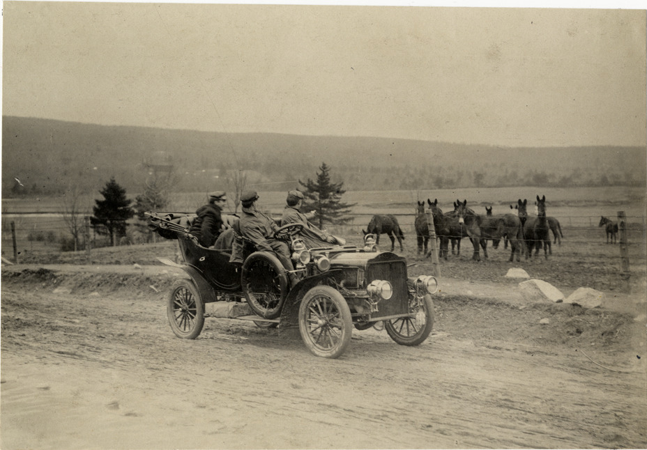 Favorite this☆ Motorists in 1905 White Steamer automobile passing mules in corral Description: View of motorists in 1905 White Steamer car passing mules in corral. Handwritten on back: "White Steamer, 1905." Details Resource ID: na031552 Subject: Automobiles, Steam White Company (Cleveland, Ohio) Mules Corrals Photographic prints Date Issued: Unknown year Format: 1 photographic print ; 4.25 x 6.25 in. Member of: National Automotive History Collection Lazarnick Collection Filing Location: White, 1905 #3 Rights: Physical rights are retained by DPL. Copyright is retained in accordance with U.S. copyright laws.
