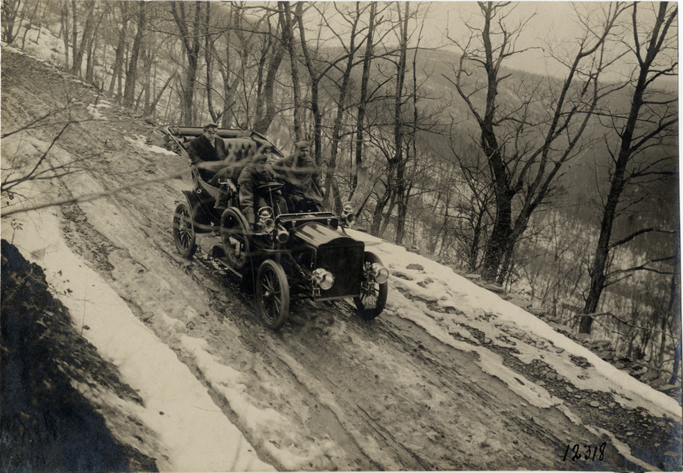 Favorite this☆ Motorists in 1905 White Steamer automobile traveling on snow-covered mountain road Description: View of motorists in 1905 White Steamer car traveling on snow-covered mountain road. Handwritten on back: "White Steamer, 1905." Details Resource ID: na031589 Subject: Automobiles, Steam White Company (Cleveland, Ohio) Mountain roads Photographic prints Date Issued: Unknown year Format: 1 photographic print ; 4.5 x 6.5 in. Member of: National Automotive History Collection Lazarnick Collection Filing Location: White, 1905 #3 Rights: Physical rights are retained by DPL. Copyright is retained in accordance with U.S. copyright laws.