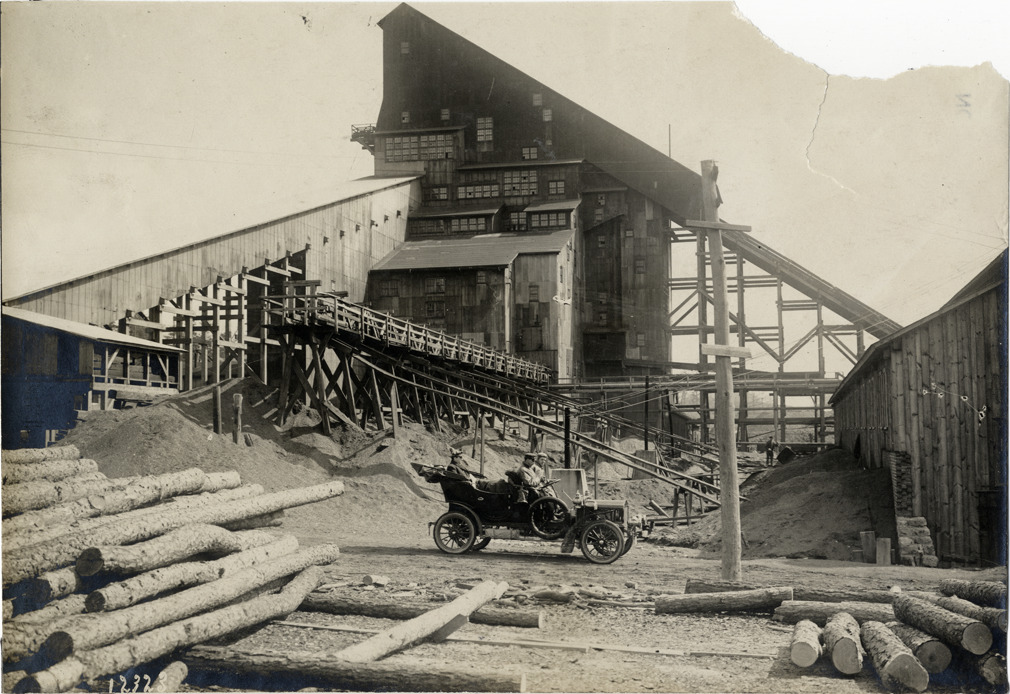 Favorite this☆ Motorists in 1905 White Steamer automobile in front of coal processing plant Description: View of motorists in 1905 White Steamer car posing in front of a coal breaking or processing plant. Handwritten on back: "White Steamer, 1905." Details Resource ID: na031593 Subject: Automobiles, Steam White Company (Cleveland, Ohio) Coal mines and mining Factories Photographic prints Date Issued: Unknown year Format: 1 photographic print ; 4.75 x 6.75 in. Member of: National Automotive History Collection Lazarnick Collection Filing Location: White, 1905 #3 Rights: Physical rights are retained by DPL. Copyright is retained in accordance with U.S. copyright laws.