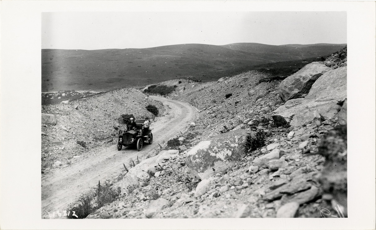 Favorite this☆ Motorists in 1906 White Steamer automobile on mountain road, New York Description: View of motorist in 1906 White Steamer car traveling on mountain road in New York State. Handwritten on back: "N.Y. to Montauk in White. White, 1906." Details Resource ID: na031628 Subject: Automobiles, Steam White Company (Cleveland, Ohio) Mountain roads--New York (State) Photographic prints Date Issued: Unknown year Format: 1 photographic print ; 5 x 8 in. Member of: National Automotive History Collection Lazarnick Collection Filing Location: White, 1906 Rights: Physical rights are retained by DPL. Copyright is retained in accordance with U.S. copyright laws.