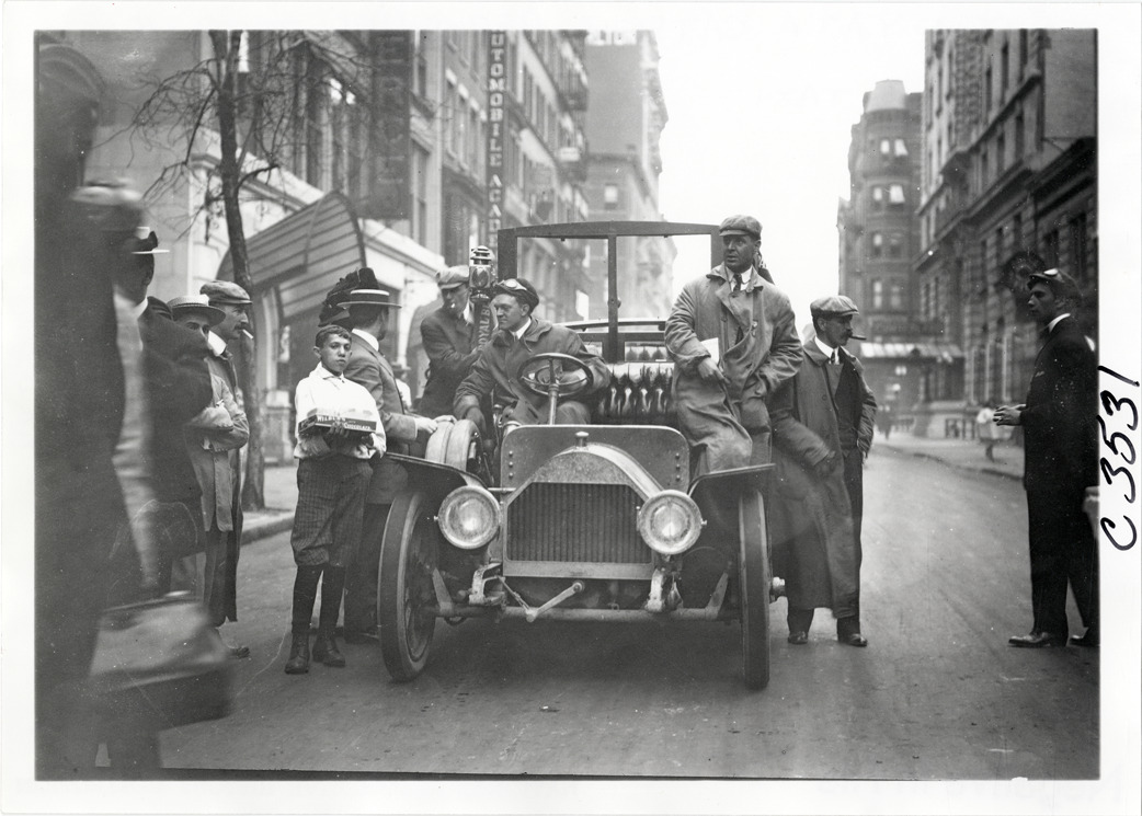 Motorists posing with Thomas taxi, 1909 Catskill-Berkshire Tour