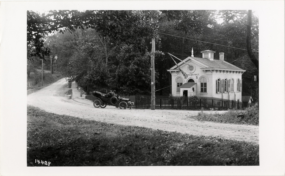 Favorite this☆ Motorists with 1913 White automobile in front of schoolhouse Description: View of motorists with 1913 White car in front of schoolhouse for School District no. 5. Handwritten on back: "Schoolhouse. White, 1913." Details Resource ID: na031731 Subject: Automobiles White Company (Cleveland, Ohio) School buildings Photographic prints Date Issued: 1912 Format: 1 photographic print ; 5 x 8 in. Member of: National Automotive History Collection Lazarnick Collection Filing Location: White, 1913 #2 Rights: Physical rights are retained by DPL. Copyright is retained in accordance with U.S. copyright laws.