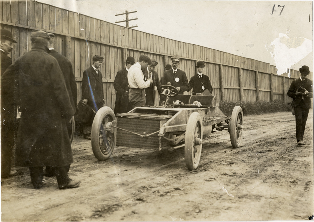 Favorite this☆ 1904 Winton Bullet racecar Description: View of 1904 Winton Bullet racecar, parked next to fence. Onlookers in background. Handwritten on back: "Bullet. Winton, 1904." Details Resource ID: na031757 Subject: Winton automobiles Automobiles, Racing Photographic prints Date Issued: Unknown year Format: 1 photographic print ; 4.75 x 6.75 in. Member of: National Automotive History Collection Lazarnick Collection Filing Location: Winton Rights: Physical rights are retained by DPL. Copyright is retained in accordance with U.S. copyright laws.