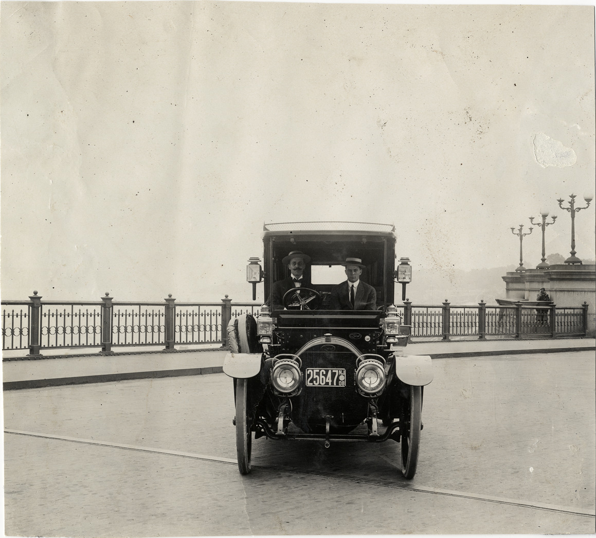 Favorite this☆ Driver and passenger in 1908 Zust automobile Description: Front view of driver and passenger posing in 1908 Zust car. Handwritten on back: "Zust, 1908." Details Resource ID: na031784 Subject: Automobiles Zust (Firm) Photographic prints Date Issued: Unknown year Format: 1 photographic print ; 7 x 7.75 in. Member of: National Automotive History Collection Lazarnick Collection Filing Location: Zust Rights: Physical rights are retained by DPL. Copyright is retained in accordance with U.S. copyright laws.