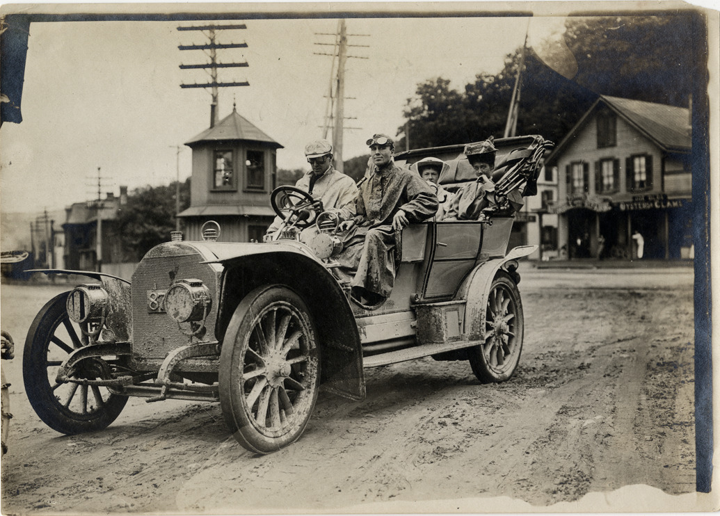 Motorists posing in Zust automobile, Suffern, New York