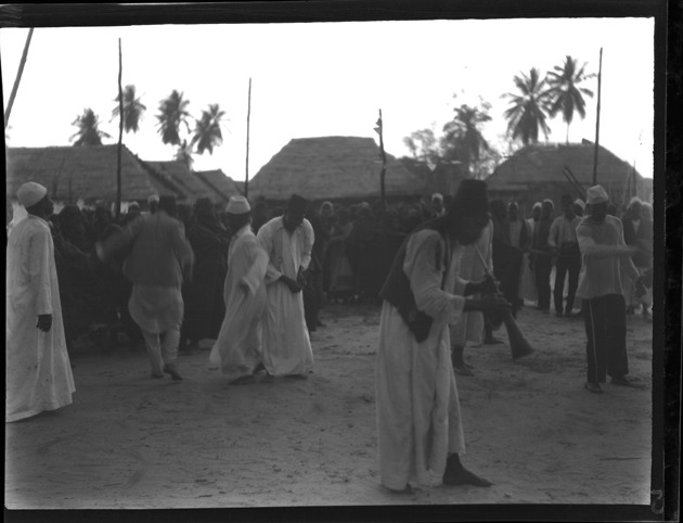 Favorite this☆ Dancers and musician in Somalia Description: View of men dancing and man playing musical instrument in Somalia. Dwellings with thatched roofs in background. Handwritten on sleeve: "Somaliland, north east, Africa, authors of magnificent verse." Details Resource ID: na031887 Subject: Men--Somalia Musicians--Somalia Dancers--Somalia Baker, Aloha W., 1908-1996--Archives Photography--Negatives Date Issued: 1926 to 1927 Format: 1 negative ; 3.25 x 4.25 in. Member of: National Automotive History Collection Filing Location: MS33/Aloha Baker collection, Box 6, Folder 2, Africa, Negative Book #1, Kenya, S. Africa, Portuguese East Africa Rights: Physical rights are retained by DPL. Copyright is retained in accordance with U.S. copyright laws.