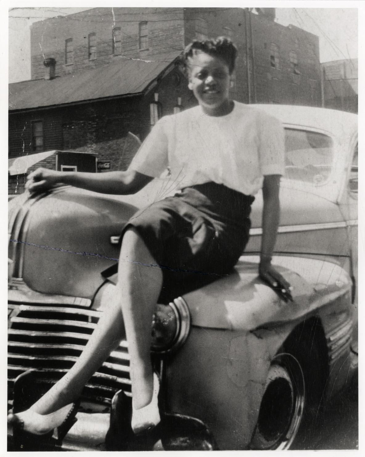 Favorite this☆ Woman posing on hood of automobile Description: View of a woman posing on the hood of a car. Brick building in background. Details Resource ID: na032216 Subject: Automobiles African American women Photographic prints Date Issued: Unknown year Format: 1 photographic print ; 10 x 8 in. Member of: National Automotive History Collection Filing Location: African Americans Rights: Physical rights are retained by DPL. Copyright is retained in accordance with U.S. copyright laws.
