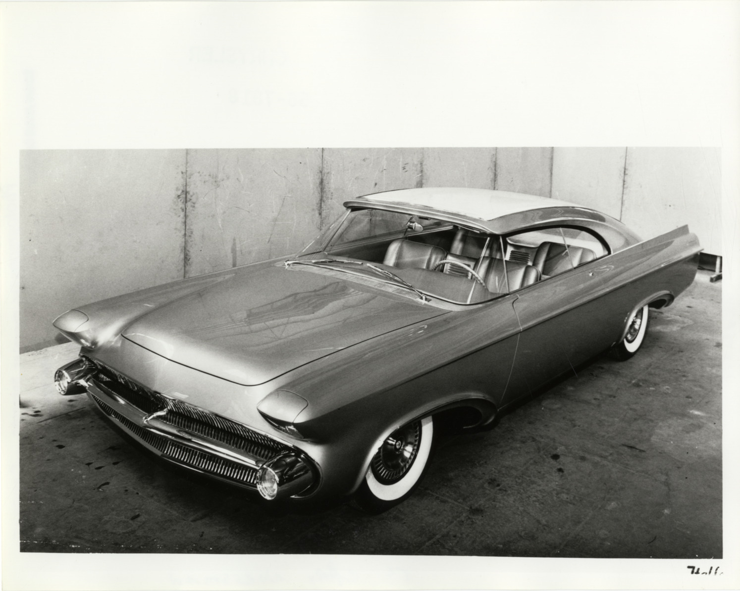 View of 1956 Chrysler Norseman concept car. Typed on back: "1956 Chrysler Norseman." Handwritten on back: "'56 Chrysler Norseman, concept."